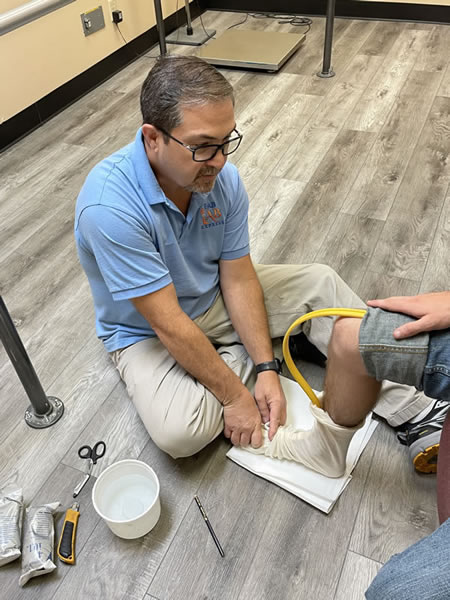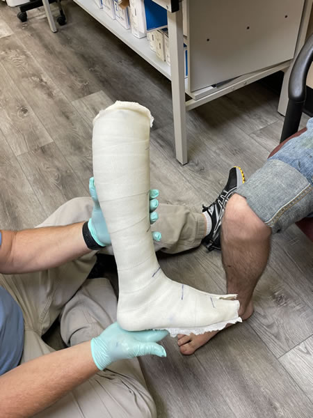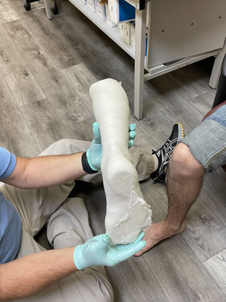 - Prepare the extremity for casting by determining the patient’s most functional and correct position depending on your patient’s condition. Placing the foot on the floor gives a great impression of what the foot and ankle looks like prior to fully weight bearing and allows the technical staff to see how much correction could be tolerated during fabrication.
